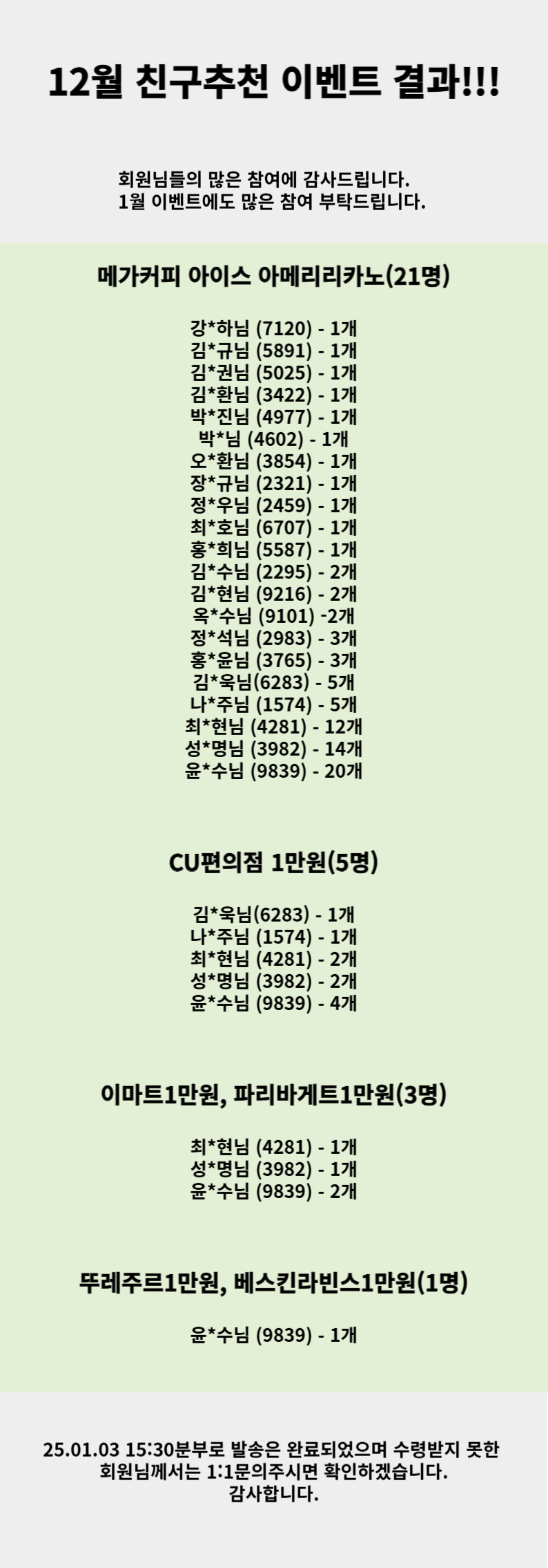 12월 친구추천 이벤트 결과